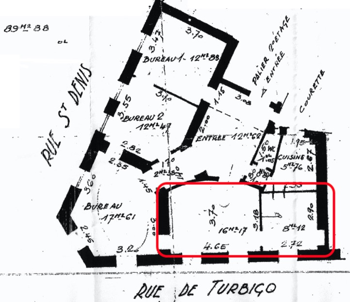 Métro Etienne Marcel / Châtelet, 16 rue de Turbigo. Dans immeuble haussmannien de très bon standing accueillant quasi exclusivement des professionnels : à louer local professionnel de 24m2 au 3e étage avec ascenseur dans cabinet médical accueillant déjà un psychologue clinicien et une gynécologue. Local partagé en deux pièces communicantes, de 16 et 8 m2. Très clair et calme. Parties communes composées d’une salle d’attente spacieuse, d’une cuisine et d’un WC.